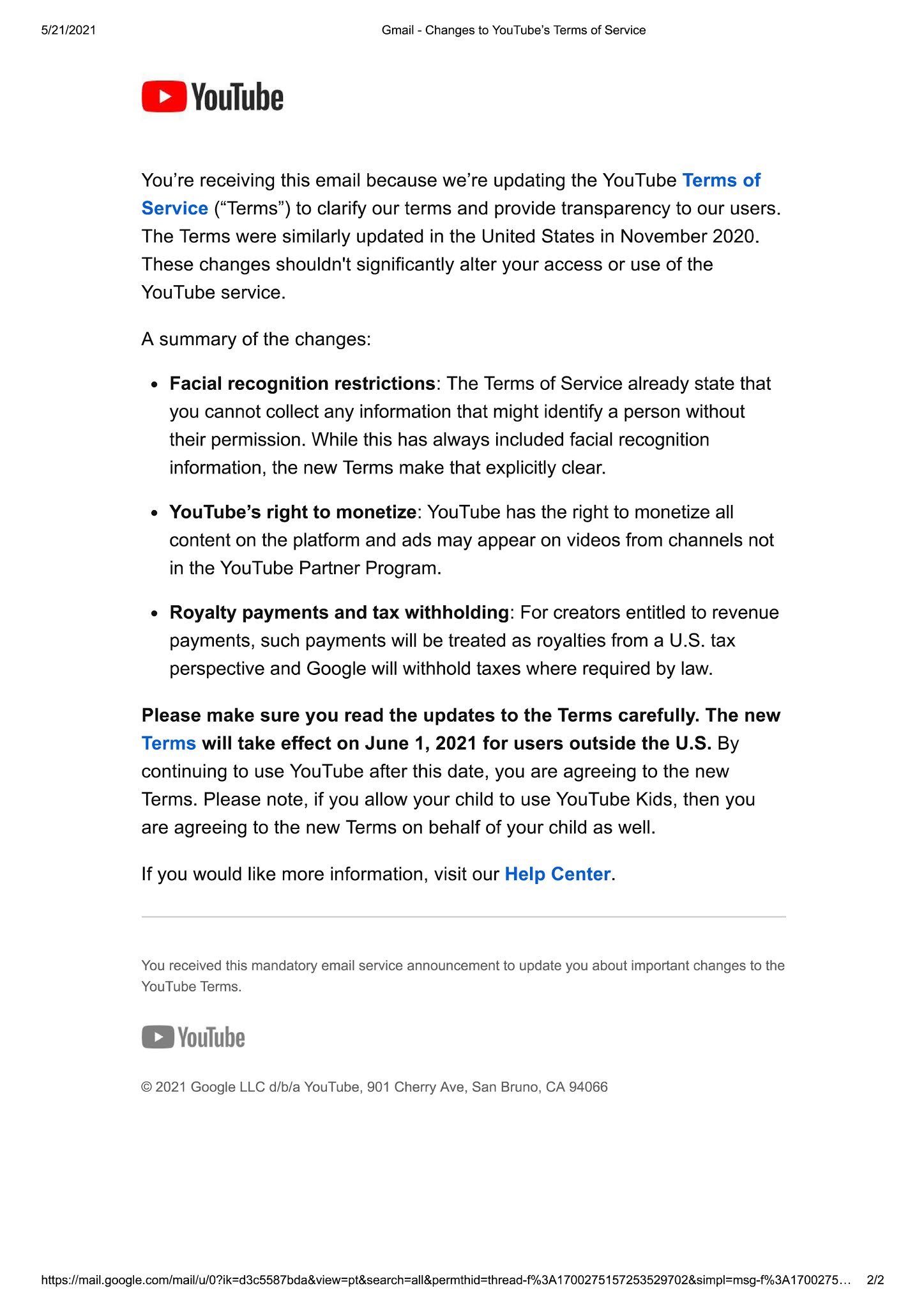 2. The right to monetize. YouTube has the right to monetize all content and ads displayed on YouTube except the YouTube Partner Program.